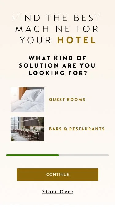 A quick quiz to help guide users to their perfect coffee solution. Each quiz would be unique to the business selected on step 1.